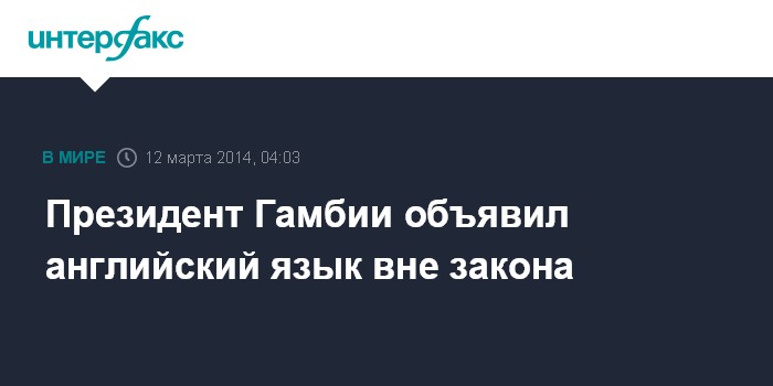 Лондон. 12 марта. ИНТЕРФАКС - Президент Гамбии - самой маленькой страны в континентальной Африке - Яйя Джамме заявил, что она откажется использовать английский язык в качестве официального, сообщают западные СМИ.