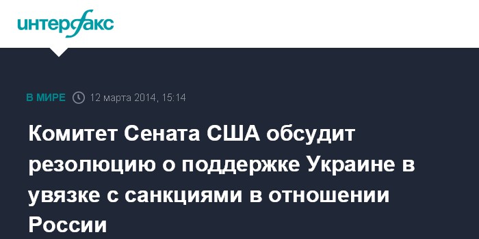 Вашингтон. 12 марта. INTERFAX.RU - Комитет по международным делам сената США рассмотрит в среду проект резолюции о поддержке новых властей Украины.