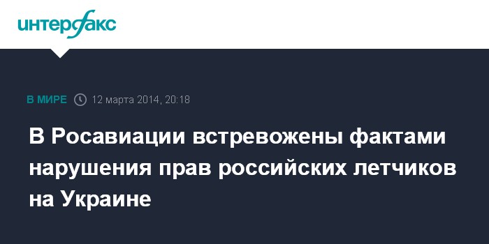 Москва. 12 марта. INTERFAX.RU - В Росавиации встревожены фактами нарушения прав российских летчиков на Украине.