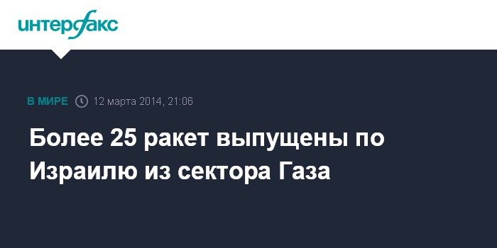 Москва. 12 марта. INTERFAX.RU - Группировка "Палестинский исламский джихад" в среду выпустила с территории сектора Газа по югу Израиля не менее 25 ракет, сообщает израильская газета Haaretz.