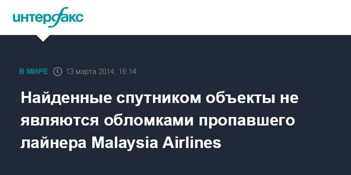 Найденные спутником объекты не являются обломками пропавшего лайнера Malaysia Airlines