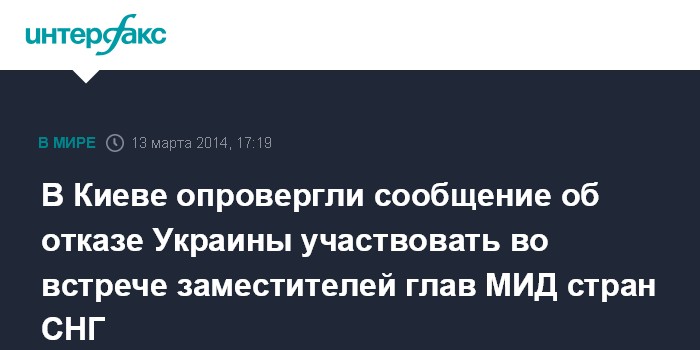 Киев. 13 марта. INTERFAX.RU - Украина не отказывалась от участия во встрече на уровне замминистров иностранных дел стран СНГ в Минске, сообщают в украинском министерстве иностранных дел.