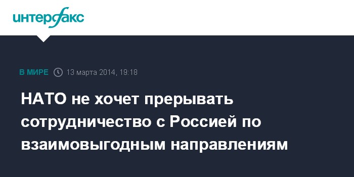 НАТО не хочет прерывать сотрудничество с Россией по взаимовыгодным направлениям