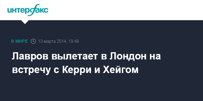 Москва. 13 марта. INTERFAX.RU - Глава МИД РФ Сергей Лавров вылетает в Лондон для встречи с госсекретарем США Джоном Керри по Украине.