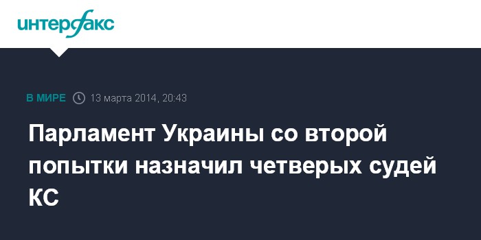 Киев. 13 марта. INTERFAX.RU - Народные депутаты на заседании в четверг поддержали назначение четверых судей Конституционного суда (КС) по квоте Верховной Рады.