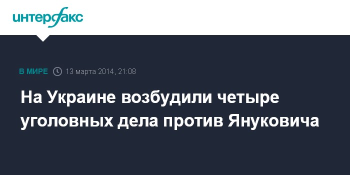Киев. 13 марта. INTERFAX.RU - Генеральная прокуратура Украины расследует 4 уголовных производства в отношении Виктора Януковича, заявляет и.о. генерального прокурора Украины Олег Махницкий.