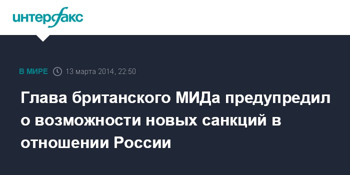 Лондон. 13 марта. INTERFAX.RU - Министр иностранных дел Великобритании Уильям Хейг в четверг призвал Крым отказаться от проведения референдума, предусматривающего возможность вхождения этой территории в состав России и предупредил Москву, что ей могут грозить новые санкции ЕС.