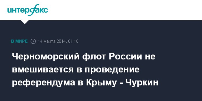 Черноморский флот России не вмешивается в проведение референдума в Крыму - Чуркин