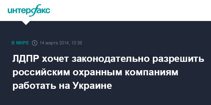 По словам Лугового, российские охранники - это, как правило, бывшие офицеры, бывшие солдаты, сержанты Минобороны, полиции и ФСБ. Он сообщил, что фракция ЛДПР в ближайшие дни подготовит специальные поправки в законодательство об охранной деятельности, которые позволят российским охранным компаниям работать за рубежом. По его словам, обращение российских охранников к президенту особенно важно в связи с тем, что на прошлой неделе "группа американских и британских охранных компаний высадилась на территории Украины - более 300 человек - и взяла под охрану ключевые административные здания так называемой новой власти".