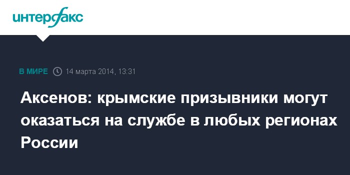 "После вхождения в состав России в Крыму будет действовать российская Конституция. Также на Крым будет распространяться действие и других российских законов. В соответствии с ними будет осуществляться и призыв в Российскую армию", - сказал Аксенов.