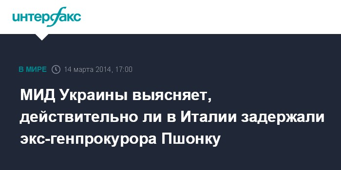 Москва. 14 марта. INTERFAX.RU - Министерство иностранных дел Украины проверяет информацию о задержании бывшего генпрокурора Виктора Пшонки в Италии.