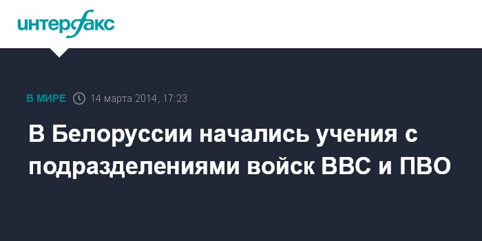 Москва. 14 марта. INTERFAX.RU - Тактическое учение с подразделениями войск ВВС и ПВО началось в пятницу в Белоруссии, часть военной авиации перебазировалась на подготовительные аэродромы.