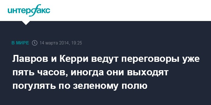 Москва. 14 марта. INTERFAX.RU - Переговоры главы МИД РФ Сергея Лаврова и госсекретаря США Джона Керри по Украине продолжаются уже пять часов.