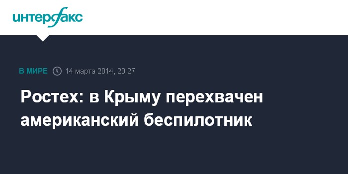 Москва. 14 марта. INTERFAX.RU - В небе над Крымом перехвачен разведывательно-ударный американский беспилотник, сообщает госкорпорация Ростех.