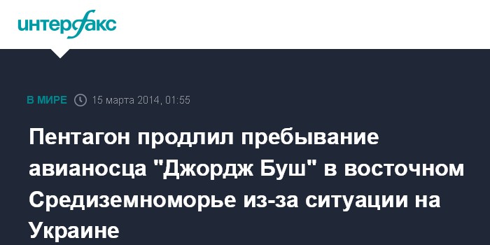По словам С.Уаррена, продление присутствия авианосца, который идет на плановое боевое патрулирование в район Персидского залива, направлено на то, чтобы поддержать союзников по НАТО, которые обеспокоены возможными действиями РФ на Украине.