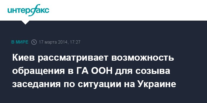 Москва. 17 марта. INTERFAX.RU - В украинском МИД не исключают обращения в Генеральную ассамблею ООН с просьбой созвать заседание по ситуации на Украине.