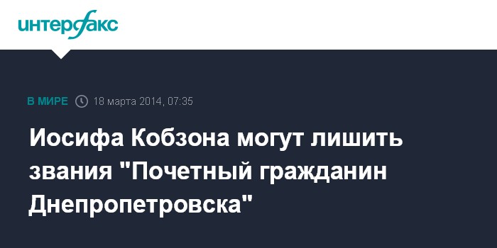 Днепропетровск. 18 марта. ИНТЕРФАКС-УКРАИНА - Жители украинского города Днепропетровска начали сбор подписей за лишение звания "Почетный гражданин" народного артиста Украины и Советского Союза Иосифа Кобзона.