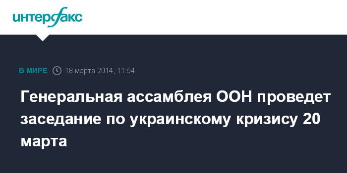 Нью-Йорк (ООН). 18 марта. INTERFAX.RU - Генеральная ассамблея ООН планирует рассмотреть 20 марта украинский кризис.