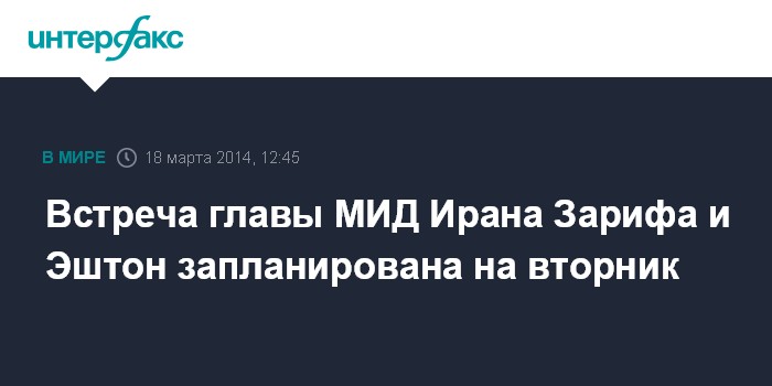 Тегеран. 18 марта. INTERFAX.RU - Министр иностранных дел Ирана Джавад Зариф и глава европейской дипломатии Кэтрин Эштон встретятся во вторник утром в Вене.