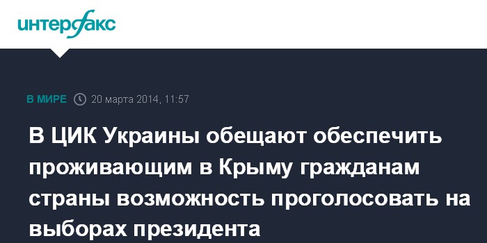 В ЦИК Украины обещают обеспечить проживающим в Крыму гражданам страны возможность проголосовать на выборах президента