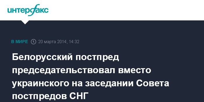 Москва. 20 марта. INTERFAX.RU - После прекращения Украиной председательства в СНГ в четверг на заседании Совета постпредов председательствовал белорусский представитель.