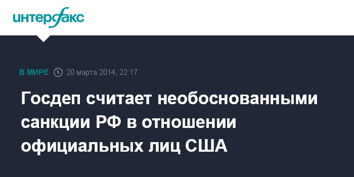 Москва. 20 марта. INTERFAX.RU - В Вашингтоне не усматривают веских оснований у России для введения ограничительных мер в отношении американских официальных лиц, заявила в четверг представитель госдепа США Дженнифер Псаки.