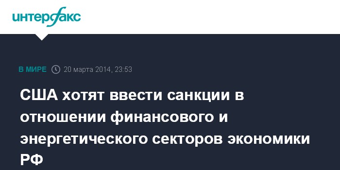Москва. 20 марта. INTERFAX.RU - Администрация США планирует ввести санкции в отношении финансового, энергетического, горнодобывающего и других секторов экономики России, сообщил в четверг высокопоставленный источник в Белом доме.