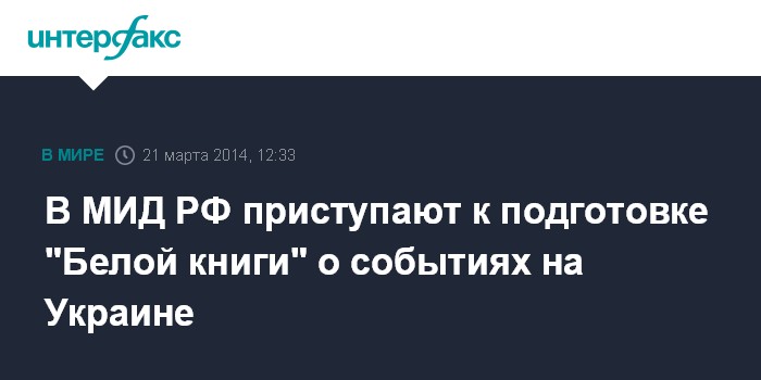 Москва. 21 марта. INTERFAX.RU - МИД РФ готовит "Белую книгу" по событиям на Украине, заявил глава ведомства Сергей Лавров.