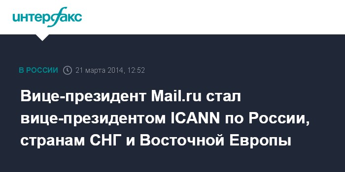 Вице-президент Mail.ru стал вице-президентом ICANN по России, странам СНГ и Восточной Европы