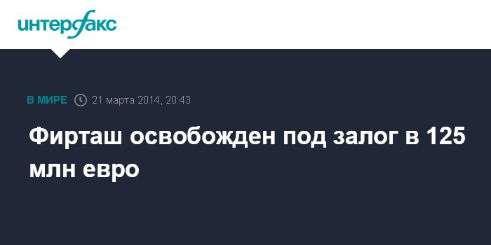 Киев. 21 марта. INTERFAX.RU - Дмитрий Фирташ освобожден под залог, сообщила пресс-служба Group DF.