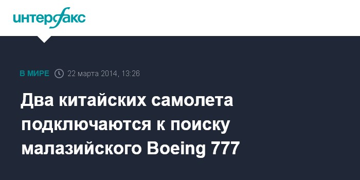 Два китайских самолета подключаются к поиску малазийского Boeing 777