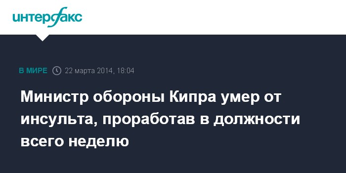 Министр обороны Кипра умер от инсульта, проработав в должности всего неделю