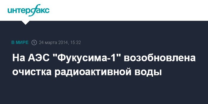 Москва. 24 марта. INTERFAX.RU - Компания-оператор аварийной АЭС "Фукусима-1" TEPCO объявила о частичном восстановлении работы системы очистки радиоактивной воды ALPS, сообщила в понедельник японская газета Asahi.