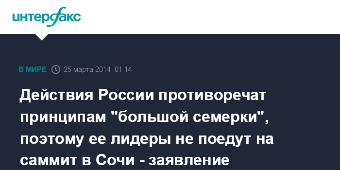 Действия России противоречат принципам "большой семерки", поэтому ее лидеры не поедут на саммит в Сочи - заявление