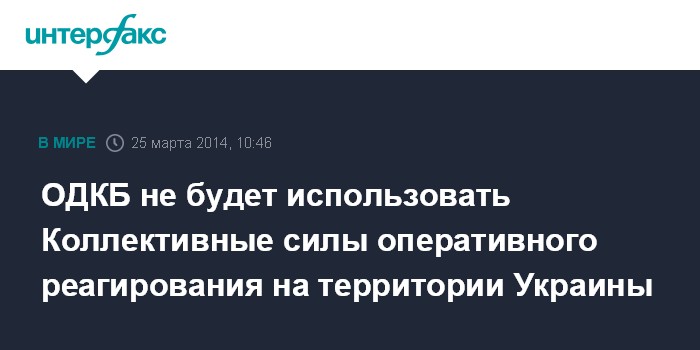 Москва. 25 марта. INTERFAX.RU - В секретариате Организации Договора о коллективной безопасности (ОДКБ) "с большим удивлением" отнеслись к заявлениям депутата киргизского парламента Турсунбая Бакир уулу о якобы возможном использовании Коллективных сил оперативного реагирования (КСОР) ОДКБ в разрешении внутриполитического кризиса на Украине.