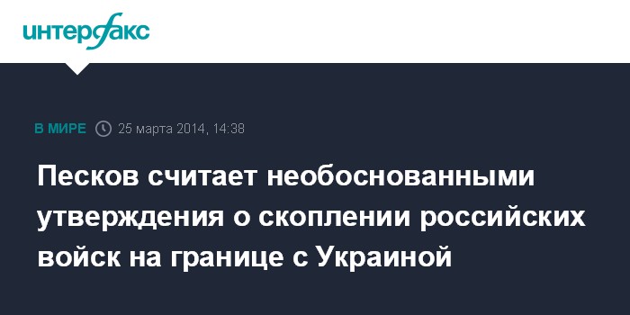 Москва. 25 марта. INTERFAX.RU - Пресс-секретарь президента РФ Дмитрий Песков считает необоснованными обвинения Запада в накоплении военной силы Россией на границе с Украиной.