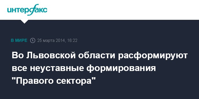Львов. 25 марта. INTERFAX.RU - Во Львовской области Украины будут расформированы все неуставные формирования, действовавшие в рамках "Правого сектора", сообщил на пресс-конференции политический референт партии в области Виталий Сергатюк.