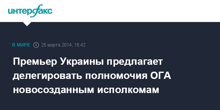 Киев. 25 марта. INTERFAX.RU - Премьер-министр Украины Арсений Яценюк настаивает на ликвидации областных государственных администраций как органов исполнительной власти в стране и делегировании их полномочий новосозданным исполкомам.