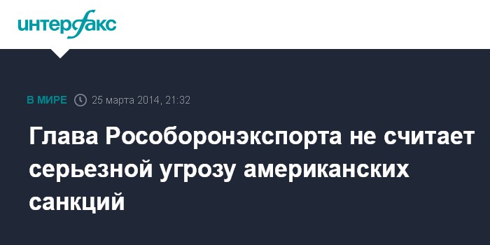 Глава Рособоронэкспорта не считает серьезной угрозу американских санкций