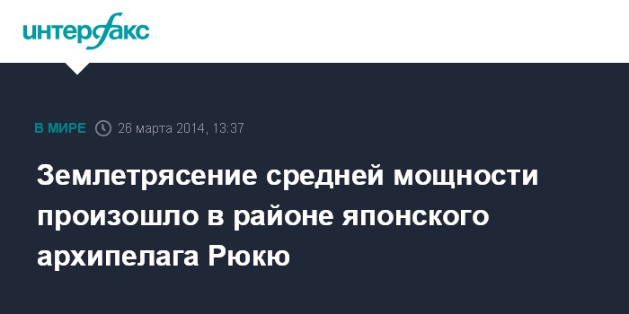 Землетрясение средней мощности произошло в районе японского архипелага Рюкю