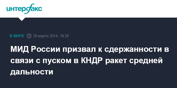 Москва. 26 марта. INTERFAX.RU - В Москве обратили внимание на информацию о проведенном в КНДР пуске ракет средней дальности класса "Нодон", сообщает МИД РФ.