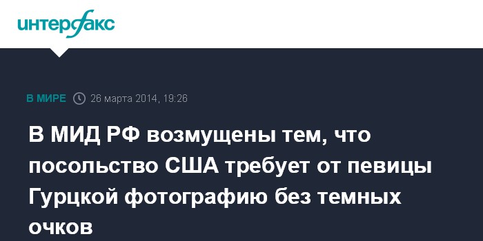 В МИД РФ возмущены тем, что посольство США требует от певицы Гурцкой фотографию без темных очков