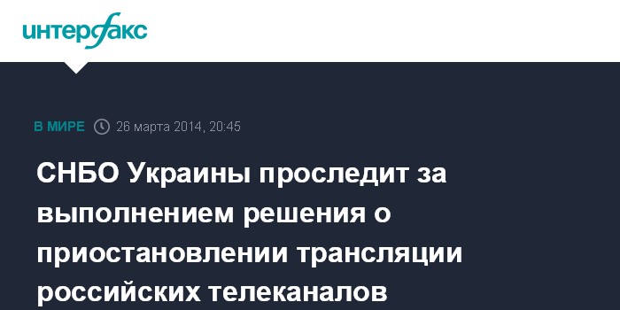 Москва. 26 марта. INTERFAX.RU - Совет национальной безопасности и обороны Украины будет отслеживать, как операторы кабельных сетей на Украине выполняют решение Окружного админсуда о приостановлении трансляции ряда российских телеканалов.