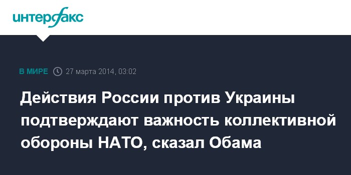 Действия России против Украины подтверждают важность коллективной обороны НАТО, сказал Обама