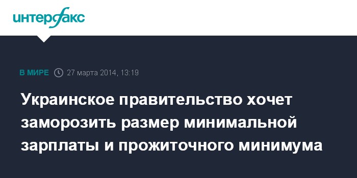 Москва. 27 марта. INTERFAX.RU - Правительство предлагает в 2014 году заморозить размер минимальной зарплаты и прожиточного минимума, заявляет премьер-министр Украины Арсений Яценюк.