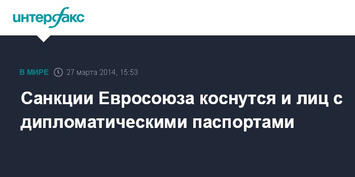 Москва. 27 марта. INTERFAX.RU - Даже обладатели дипломатических паспортов из списка российских лиц, находящихся под санкциями Евросоюза, не смогут пересечь границу ЕС.