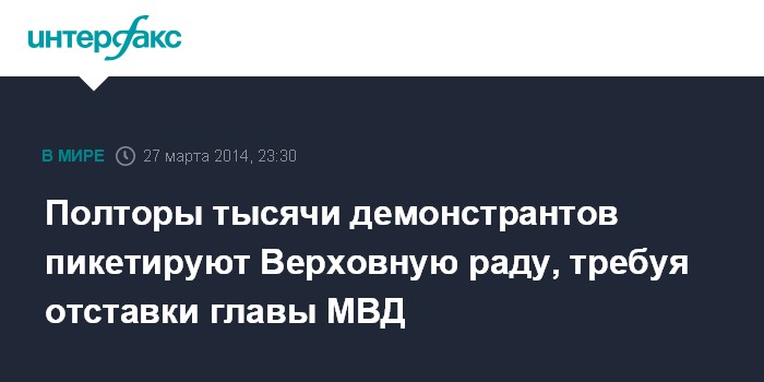 Киев. 27 марта. INTERFAX.RU - Возле здания Верховной Рады Украины в Киеве собрались люди, требующие отставки министра внутренних дел Арсена Авакова, сообщил народный депутат Сергей Каплин (партия УДАР) в эфире "Пятого канала" в четверг вечером.