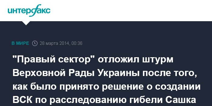 "Правый сектор" отложил штурм Верховной Рады Украины после того, как было принято решение о создании ВСК по расследованию гибели Сашка Билого