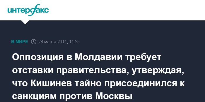 Оппозиция в Молдавии требует отставки правительства, утверждая, что Кишинев тайно присоединился к санкциям против Москвы
