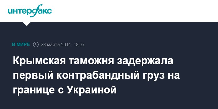 Москва. 28 марта. INTERFAX.RU - Крымская таможня задержала первый контрабандный груз в пункте пропуска "Турецкий Вал" на границе с Украиной, сообщила Федеральная таможенная служба (ФТС) РФ.